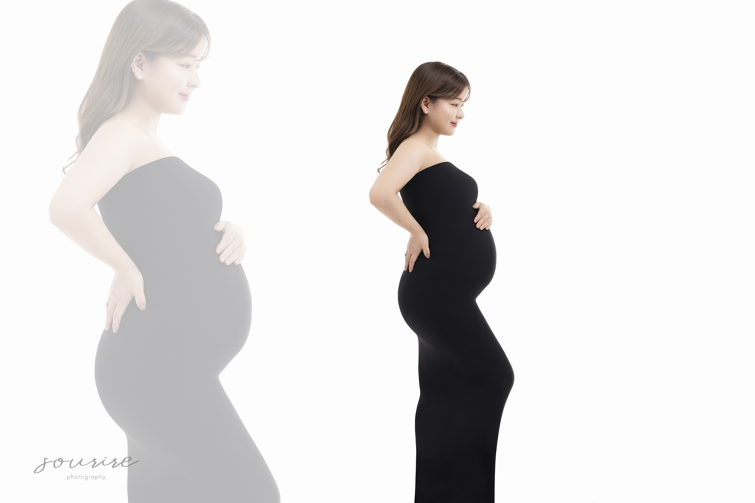 お腹を出して撮影するのは抵抗があるな、柔らかい雰囲気も出しつつかっこよさも欲しい、と悩んでいたところに出会ったのがsourireさまでした。